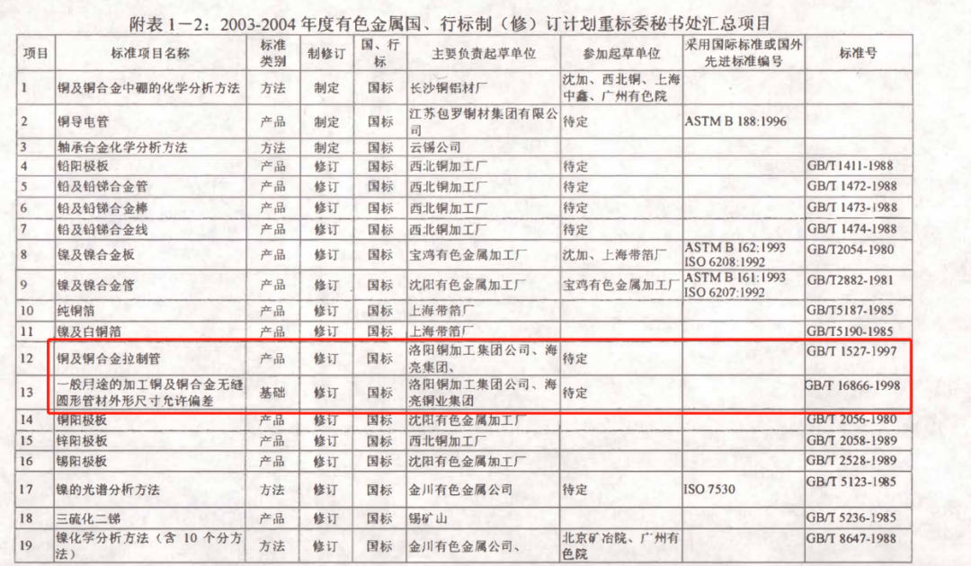有色金屬標準化工作對提升企業(yè)有色金屬行業(yè)地位有著重要的作用和顯著的意義。海亮集團主持起草的第一份國家標準是GB/T1527《銅及銅合金拉制管》標準和GB/T16866《一般用途的加工銅及銅合金無縫圓形管材外形尺寸及允許偏差》標準,這兩項國家標準修訂標志著公司當時生產(chǎn)規(guī)模、技術水平已在同行業(yè)有著重要的影響,成為有色金屬行業(yè)第一家起草國家標準的民營企業(yè)。