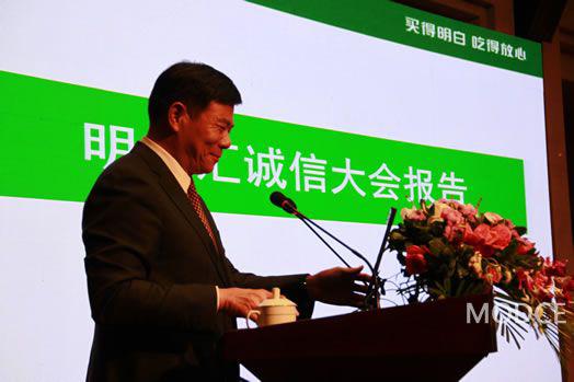 馮海良在致辭中稱:“在明康匯品牌即將面世之際,召開這次誠信大會,旨在建立明康匯農(nóng)業(yè)食品誠信體系,根除影響食品安全的最大風險—誠信風險?!?br/>
